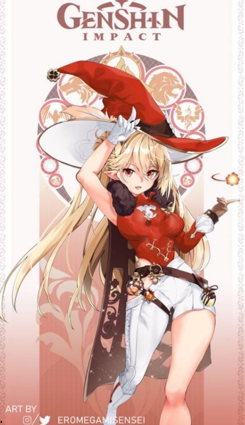 接下来,我们来看看可莉的外观设计。从官方发布的概念图来看,可莉的形象非常可爱,她的发型是两个蓬松的丸子头,眼睛大大的,闪烁着好奇和活泼的光芒。她的服装设计也非常有趣,穿着一件带有火焰图案的连衣裙,脚踩一双小巧的红色高跟鞋。整体造型充满了童真和活力,让人一眼就能记住这个角色。